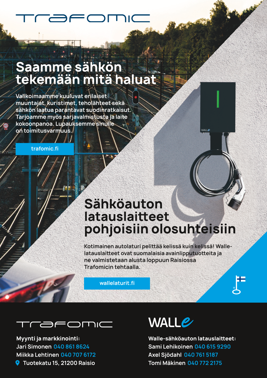 Trafomic Oy on vuonna 1983 perustettu raisiolainen yritys, joka suunnittelee sähköteknisiä ratkaisuja ja valmistaa sähkökomponentteja kuten muuntajia, kuristimia ja keloja sekä myös valmiita laitteita kuten yliaaltosuotimia ja teholähteitä. Nopeat toimitukset kaikkialle maailmanlaajuisen alihankkija- ja toimittajaverkostomme kautta.