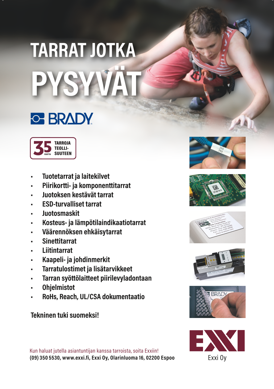 Teollisuuden merkintöjen asiantuntija vaativiin ammattisovelluksiin yli 35 vuoden kokemuksella. Toimitamme käyttökohteeseenne parhaiten sopivan tarramateriaalin ja tulostusratkaisun. Suomenkielinen tekninen tukemme ja varmat toimitukset Espoon varastostamme varmistavat tuotannon sujuvuuden.