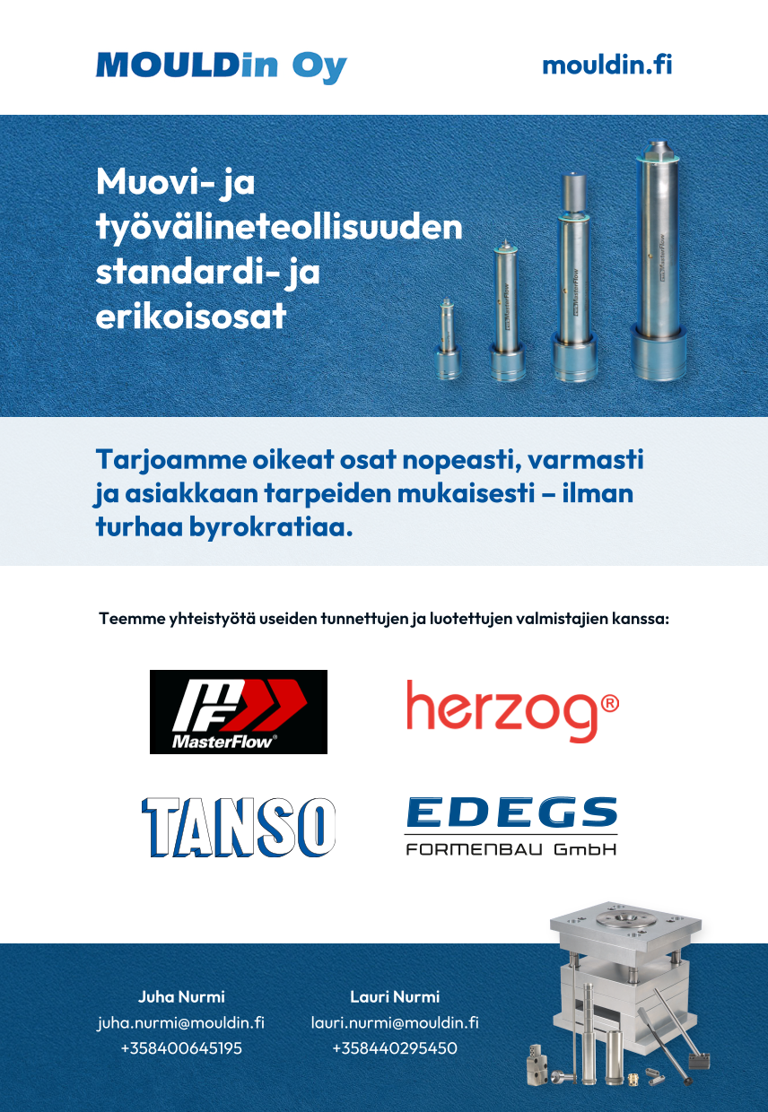 MOULDin Oy on vuonna 2006 perustettu Noormarkussa toimiva maahantuontiyritys, joka on erikoistunut standardiosien, erikoiskomponenttien ja muottiratkaisujen toimituksiin muotinvalmistajille ja ruiskuvaluteollisuudelle.