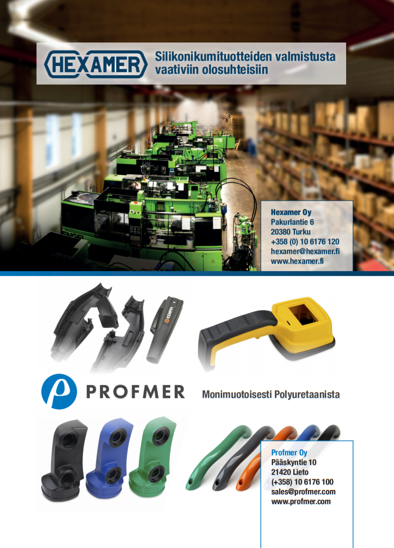 Profmer Oy on erikoistunut muottituotteiden valmistukseen, materiaalina polyuretaani. Tarjoamme elastiset polymeerit, kovat iskunkestävät laadut ja kulutuksenkestävät seokset läpivärjättynä tai muottimaalattuna. Oma työkaluvalmistuksemme takaa onnistuneet ja kustannustehokkaat projektit sovitussa aikataulussa.