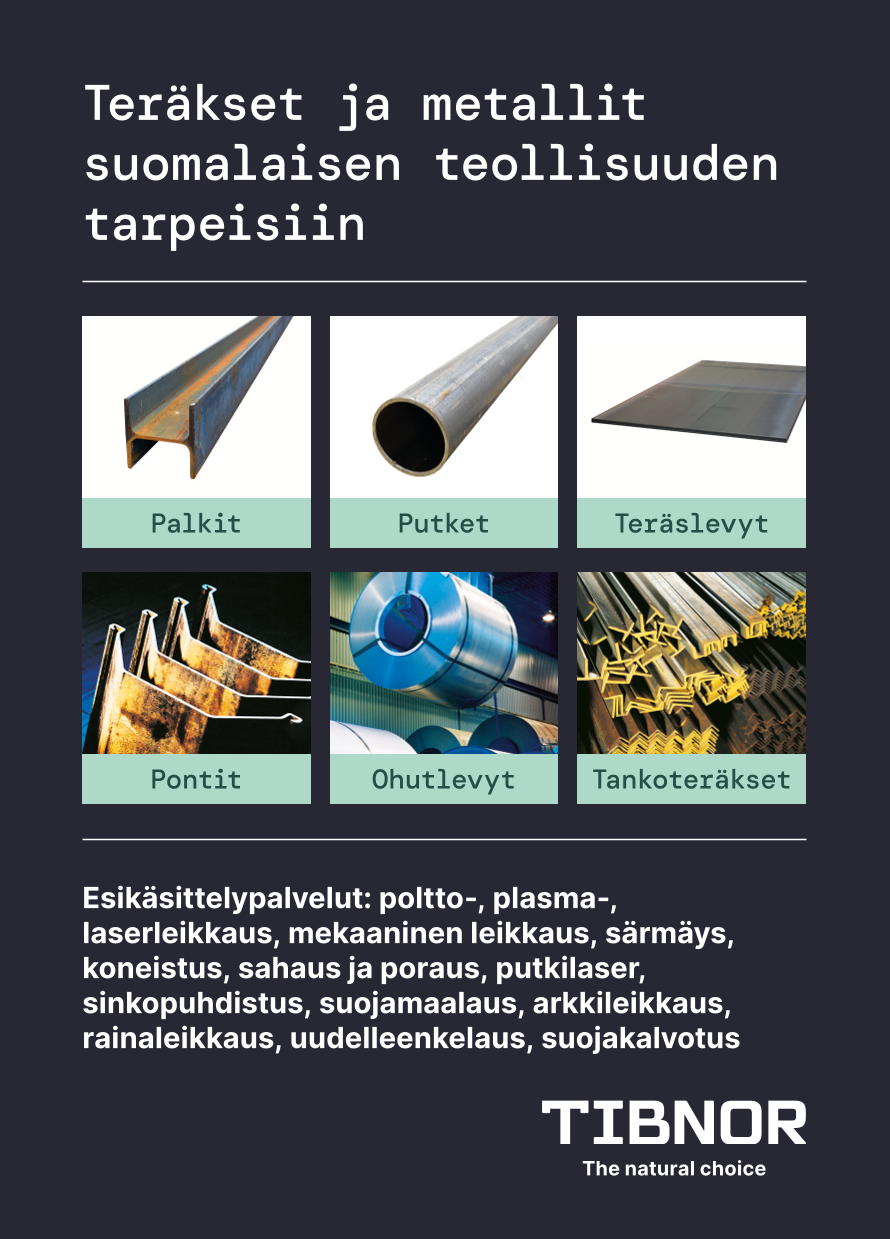 Tibnorin palveluksessa on markkinoiden osaavimpia asiantuntijoita, jotka palvelevat asiakkaita ja tarjoavat neuvontaa teräksen ja metallien käytössä. Tibnor pyrkii vastaamaan asiakkaidensa kaikkiin tarpeisiin. Siksi valitsemme kumppanimme huolellisesti parhaiden mahdollisten asiakaskohtaisten ratkaisujen varmistamiseksi. Vastuun ottaminen on osa Tibnorin DNA:ta. Tästä syystä Tibnor tekee läheistä yhteistyötä SSAB:n ja kumppaneiden kanssa pysyäkseen vihreän siirtymän eturintamassa omalla toimialallaan. Tämä tekee Tibnorista luonnollisen valinnan teräksen ja metallien toimittajaksi.