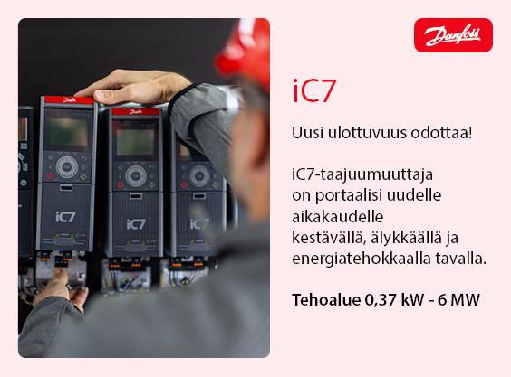 Danfoss Drivesin laajasta tuotevalikoimasta löydät taajuusmuuttajan juuri sinun tarpeisiisi. Uusi, älykäs ja energiatehokas iC7-sarjamme kattaa tehoalueen 0,37 kW:sta aina 6 MW:iin saakka. Lisäksi valikoimassamme ovat edelleen suositut ja luotettavat VLT®- ja VACON®-taajuusmuuttajat, joiden tehoalue ulottuu 0,18 kW:sta 8,0 MW:iin. Ne soveltuvat käytettäväksi kaikkien moottoriteknologioiden kanssa.